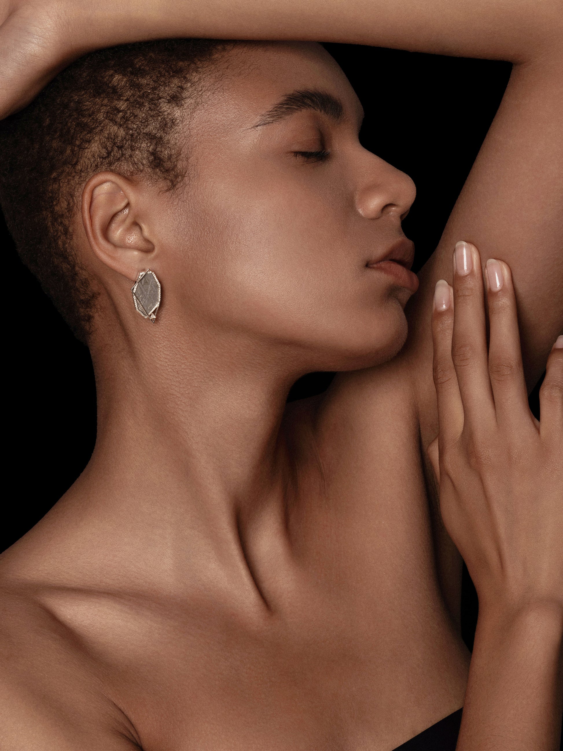 Polygon Muonionalusta Meteorite Pavé Bezel Stud Earrings