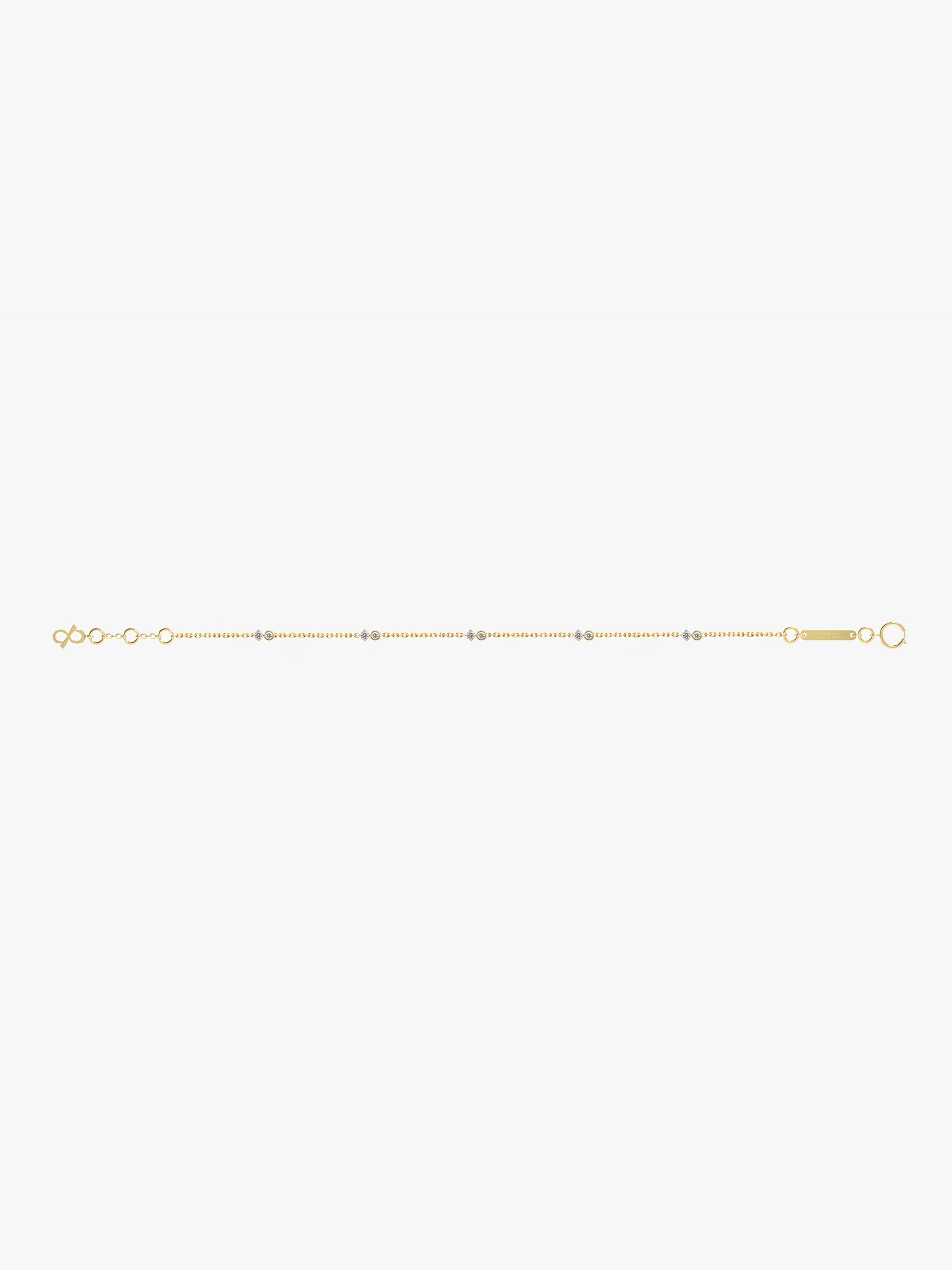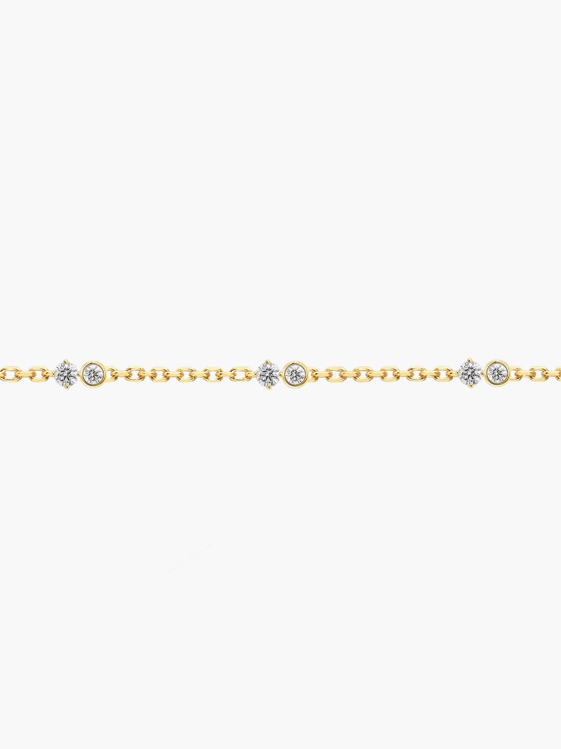 Quintet Bracelet showcases five pairs of prong- and bezel-set lab-grown diamonds in 18k gold, emphasizing sustainable elegance. A timeless, stackable design offering versatile sophistication.