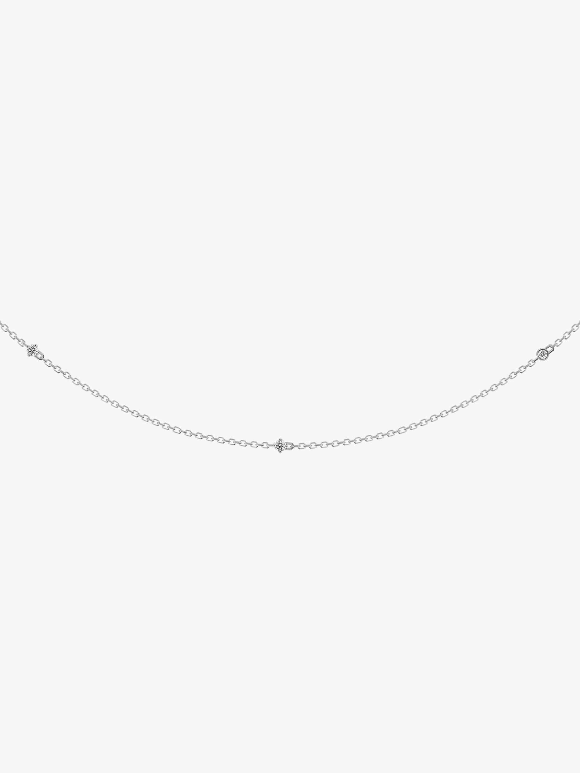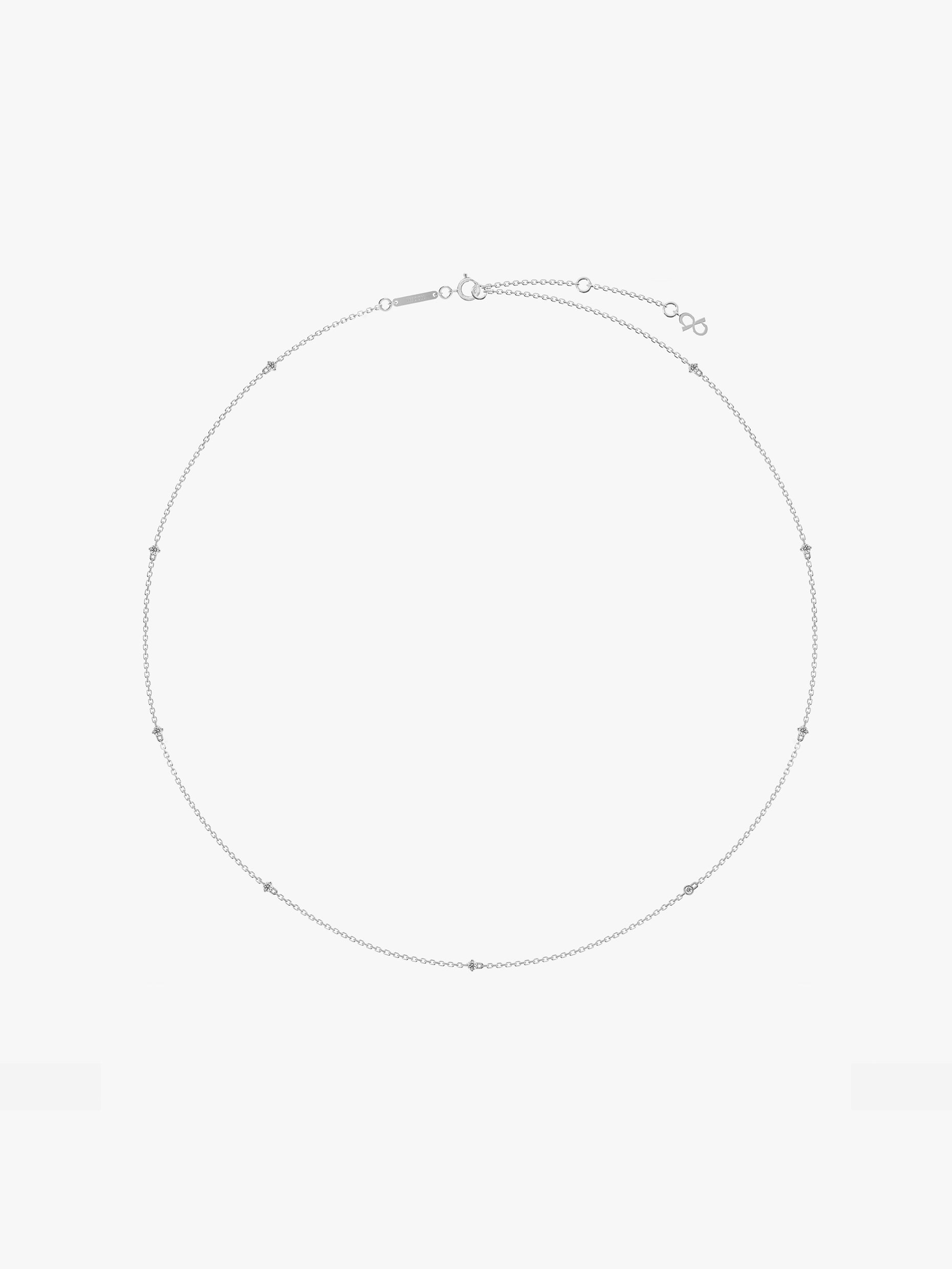 The Set Station Necklace features 8 prong-set diamonds and one bezel-set diamond in a delicate, modern design. Subtle yet striking—perfect for daily wear or special moments.