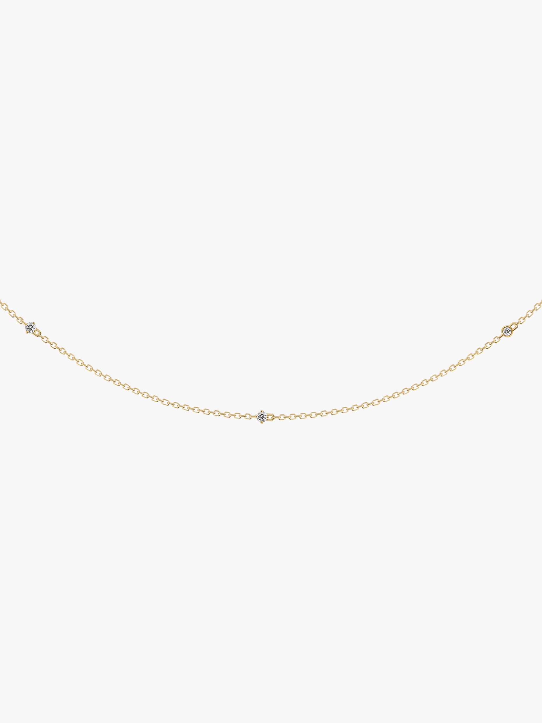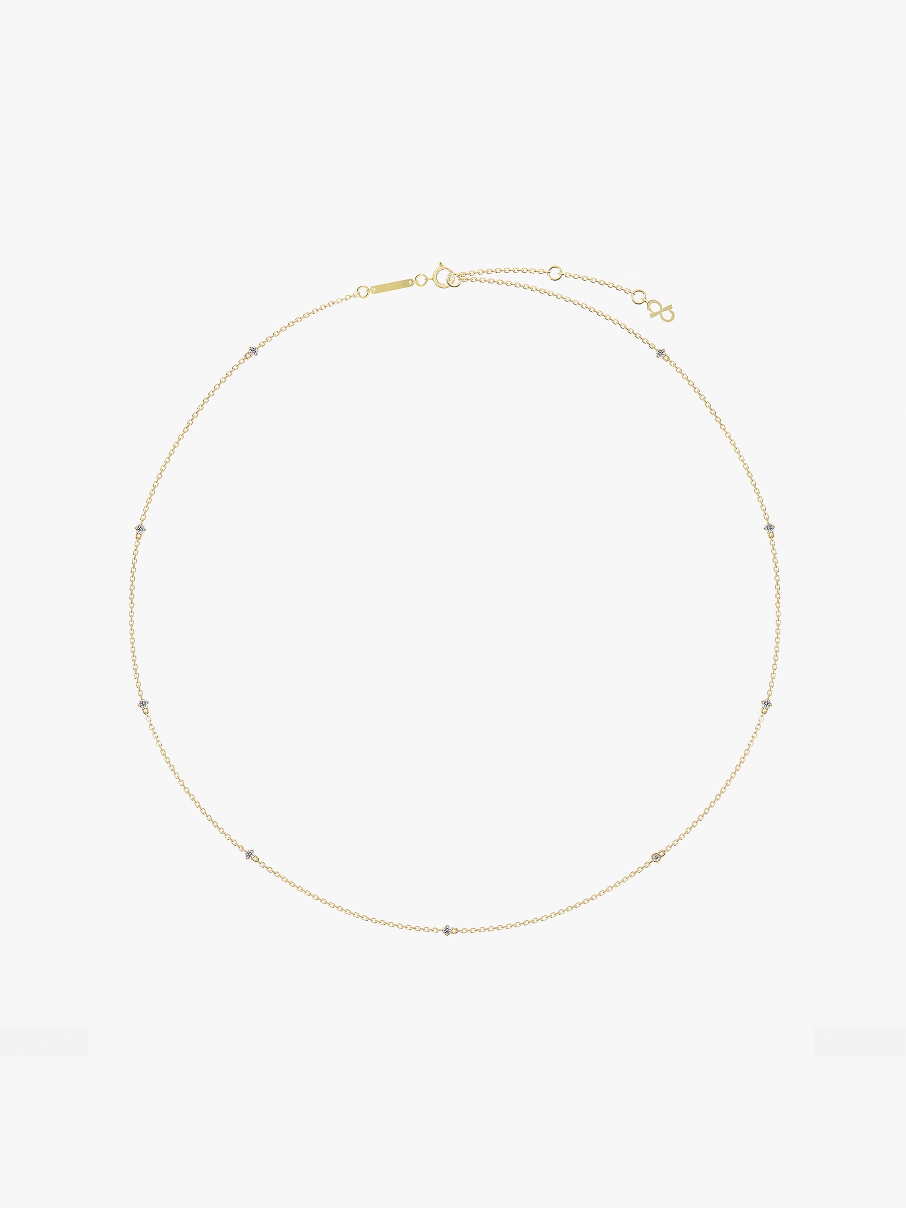 The Set Station Necklace features 8 prong-set diamonds and one bezel-set diamond in a delicate, modern design. Subtle yet striking—perfect for daily wear or special moments.