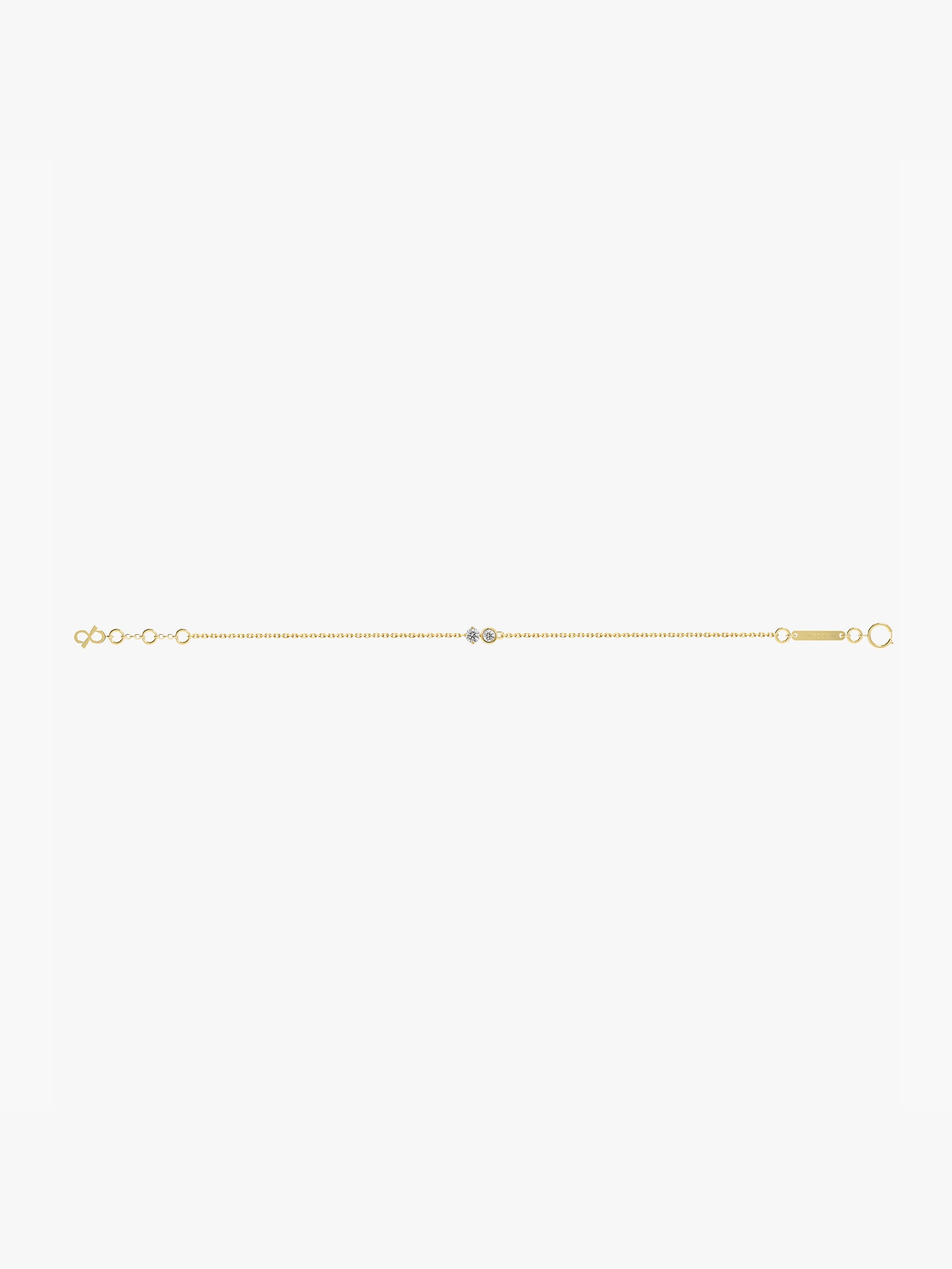 French for "you and me," the Toi et Moi Bracelet symbolizes a perfect pairing and lasting bond. Two Round Brilliant-cut diamonds—one prong-set, one bezel-set—highlight the contrast in their settings. One is lab-grown, the other natural, leaving which is which to the imagination and inviting a playful guessing game of value. Crafted in 18k gold with a fine chain, also available in an all-lab-grown option.
